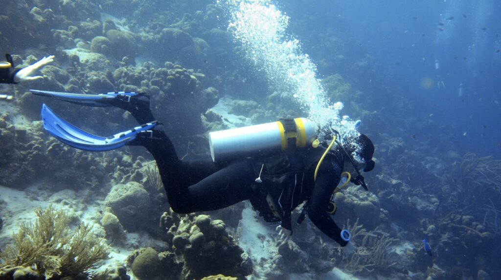 Here is a picture of me while scuba diving during my Bonaire trip in spring 2023. This was an amazing experience for me because I learned new skills, specifically scuba diving, which was essential during this trip. During this trip I received my certification to renew coral reefs as a volunteer. I have always been fascinated with marine life and reef ecosystems, so being able to see them up close and help restore the reef was a very rewarding experience. Not many people get to see a coral reef up close; this was an experience that I will remember for the rest of my life. During my dives, however, there was a lot of evidence where parts of the reef had significant damage, which was where we focused on our reef restoration projects. The events of this trip inspired me to pursue a degree in conservation biology, so that I can continue to help protect and restore coral reefs. Additionally, scuba diving is a skill that may be very relevant to my career in the future. When I graduate from the University of Mary Washington, I plan to apply for marine biology graduate programs; being a certified diver can help me when applying.