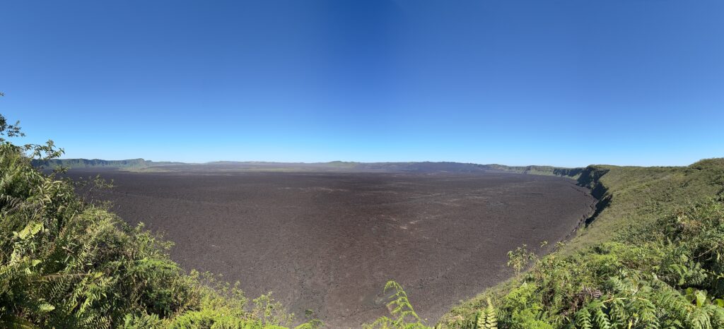 During spring break 2024, I had the amazing opportunity to travel to the Galapagos Islands off the coast of Ecuador. This trip was one of my favorite study abroad opportunities. The picture above is the caldera of the Sierra Negra Volcano, one of the many active volcanoes on Isabela Island. I had never been to a caldera, so when we reached the top of Sierra Negra, I was excited because I had just learned about the different types of volcanoes and lava flows. To be able to see a caldera in person was beyond my expectations. Although our tour guides were well-versed in the biology, they were not as well-versed in the geology of the volcanos. Since I was one of two geology majors on the trip our tour guides asked me to talk to the group about the different lava flows and geologic features we saw. The tour guides were really impressed with my knowledge on volcanoes and geology; they said that they learned things that they can pass on to other tour groups to enhance other visitors’ experience.